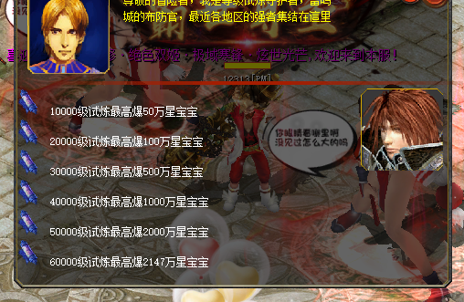 星100万魔攻宝宝6只,1000万星2只,2000万星2只!全属性188装备一套!开6宠!100倍入包、300倍入包、500入包卷各15个,时效九尾之力10个(5分钟) |